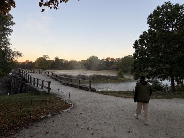 Vi pakkede bilen forholdsvis tidligt, checkede ud af hotellet og kørte til første stop, som var “The North Bridge”. Det var stedet, hvor amerikanerne gjorde deres første reelle angreb på englænderne, hvilket i sidste ende endte med USAs uafhængighed. Inden vi kørte, havde Storm spurgt, om vi havde set “statuen af the shot heard around the world”, og det viste sig, at den stod ved broen – så den fik vi også med.