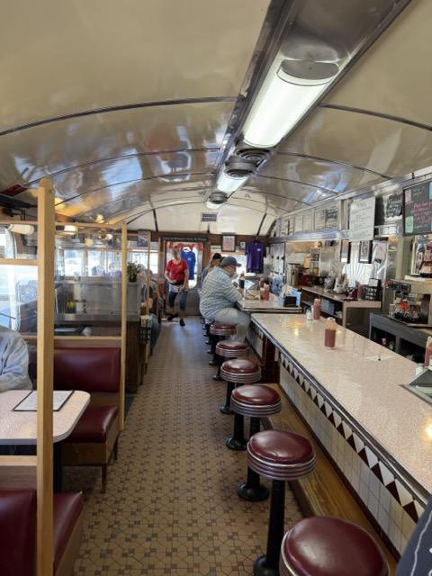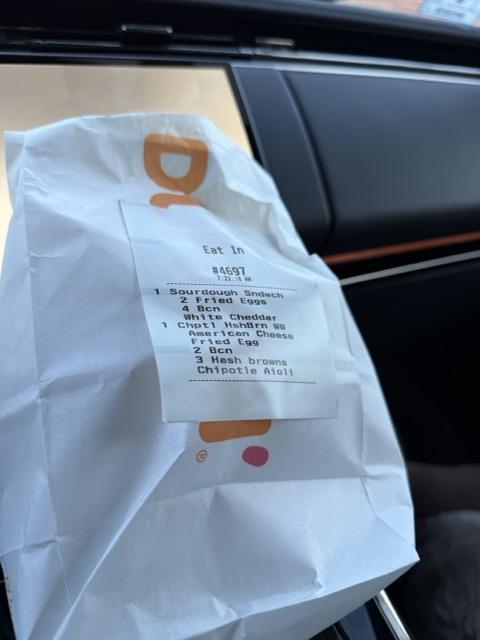 Vi fortsatte til den lokale Dunkin. Da Dunkin stammer fra Massachusetts, skulle det selvfølgelig prøves. Vi købte kaffe og morgenmad, som vi selvfølgelig nød i bilen.