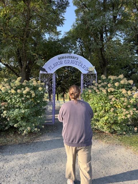 Vi startede dagen med at køre mod Stowe. Stowe er en lille, hyggelig by, som er nævnt som en af hovedattraktionerne i området, så den måtte vi se. På vej derop besøgte vi først “Ben & Jerry’s Graveyard”, som er en gravplads for alle de issmage, de ikke producerer mere – en sjov lille gimmick.