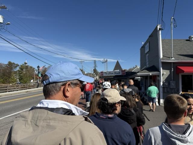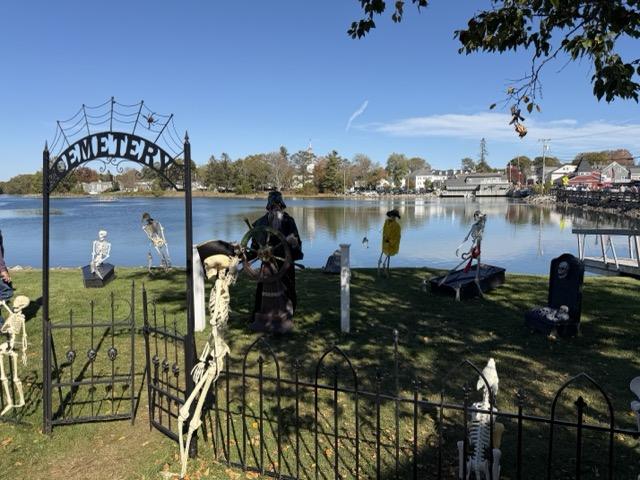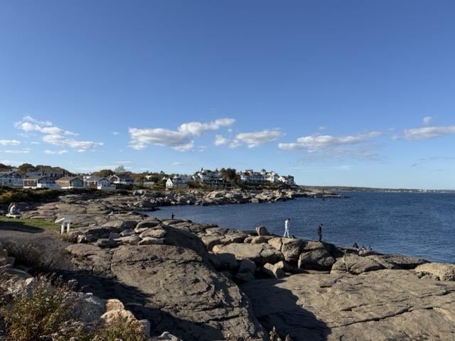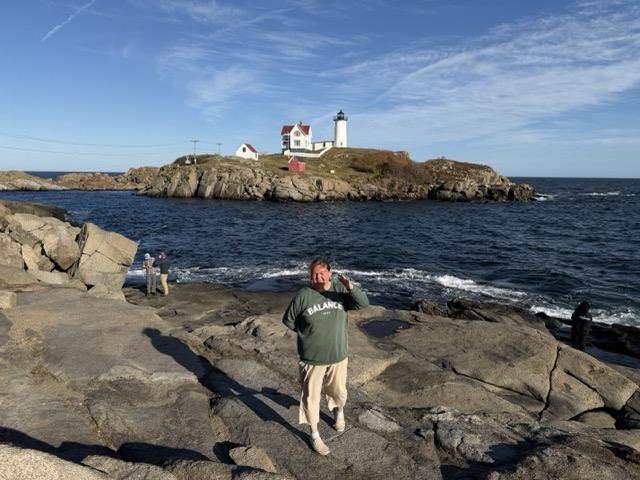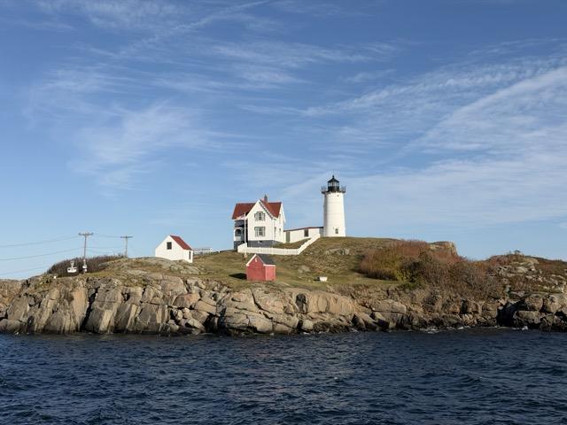 Så var vi klar til dagens køretur, som gik ned langs kysten med Highway 1 som den primære vej. Der var mange små, søde byer, flotte udsigter ud over havet og tre fyrtårne (vi fik kun taget billede af et af dem). Det var en virkelig smuk og skøn tur. Vi er helt stoppet med at tage billeder af efterårsfarverne, men vi nyder dem stadig, mens vi kører. Der er også rigtig meget Halloween-pynt – det er sjovt at se. Frokosten blev indtaget i Kennebunkport på en meget hypet lobster shack. Jeg stod i kø i en halv time for at få en lobster roll og en clam chowder, som Winnie og jeg delte. Det var en god lobster roll, men den levede ikke op til de andre, vi har smagt. Til gengæld syntes Winnie, at clam chowderen var den bedste, vi har fået.